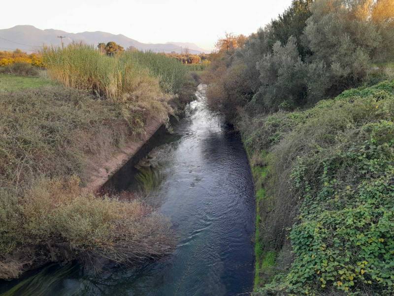 Εικόνα του Παμίσου, στα όρια των χωριών Πλατύ - Ανεμόμυλου, με την κοίτη του ποταμού ίσα που φαίνεται.