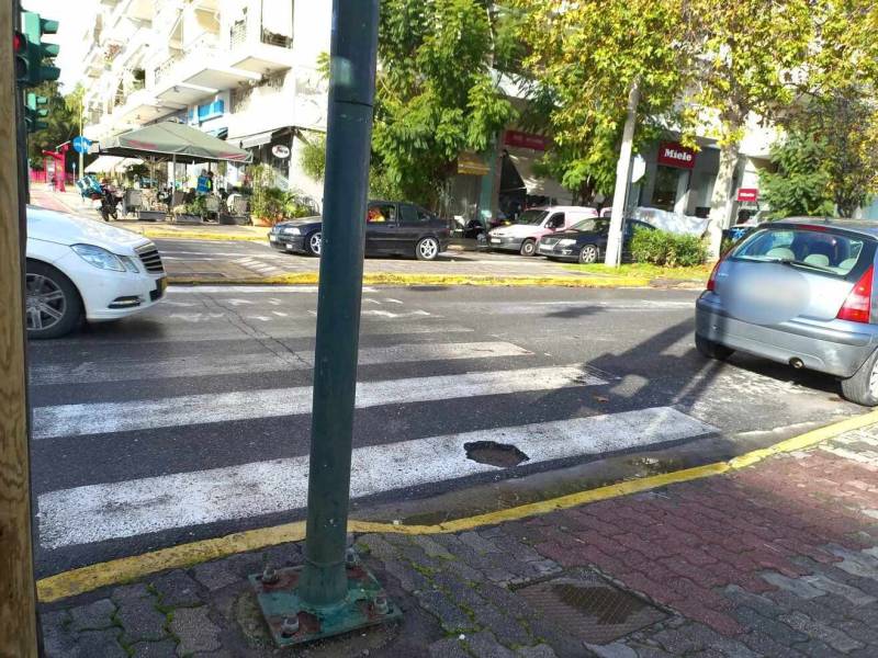 Ενα σημαντικό κενό έχει δημιουργηθεί στη διάβαση πεζών στην οδό Φιλελλήνων, στη διασταύρωση με την Κρήτης.