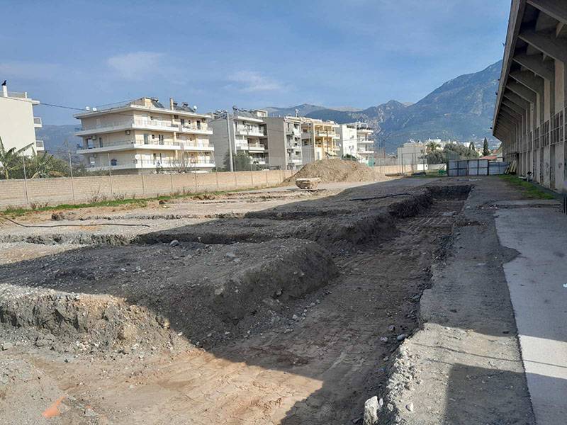 Εχουν σταματήσει εδώ και καιρό οι εργασίες για το κλειστό προπονητήριο στο Δημοτικό Στάδιο Καλαμάτας, στη βορειοδυτική πλευρά του, οι οποίες ξεκίνησαν στις αρχές Δεκεμβρίου.
