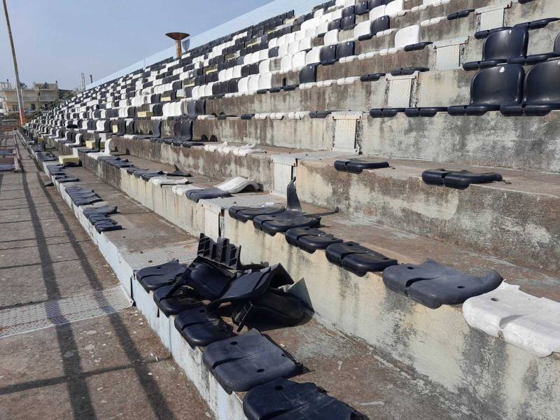 Τα καθίσματα αυτά θα έπρεπε να έχουν απομακρυνθεί, καθώς η εικόνα είναι αποκρουστική, εικόνα εγκατάλειψης και βρομιάς και με την πρώτη ευκαιρία, σε αγώνα με αντιδράσεις και διαμαρτυρίες, θα αποτελέσουν μέσα πρόκλησης οπαδικής βίας, καθώς θα εκτοξευτούν προς τον αγωνιστικό χώρο.