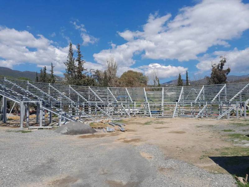 Οπως φαίνεται, οι μεταλλικές κερκίδες χωρητικότητας 2.000 περίπου θεατών, είναι εντυπωσιακές. Να υπενθυμίσουμε ότι ο ανάδοχος έχει δεσμευτεί ότι το έργο θα ολοκληρωθεί και θα παραδοθεί έγκαιρα, ώστε, επιτέλους, η Καλαμάτα να φιλοξενήσει το φετινό καλοκαίρι, σημαντικές πολιτιστικές εκδηλώσεις με κόσμο.