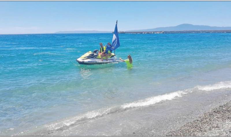 Μπήκε στη θάλασσα και την παρέλαβε η ναυαγοσώστρια και την παρέδωσε στον δήμαρχο. Αναρτήθηκε αμέσως μετά, με μια μικρή καθυστέρηση, λόγω μπερδέματος σε κόμπο που ξεμπέρδεψε ο πρόεδρος της Ελληνικής Εταιρείας Προστασίας της Φύσης, με καταγωγή από τον Αμμο.