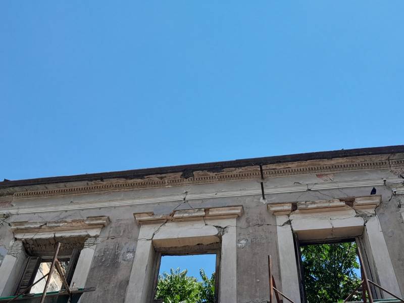 Επικίνδυνα κρέμονται πλέον τα κομμάτια από τοίχους του εγκαταλελειμμένου ερειπωμένου διατηρητέου κτηρίου στην οδό Αναγνωσταρά, στο κέντρο της Καλαμάτας.