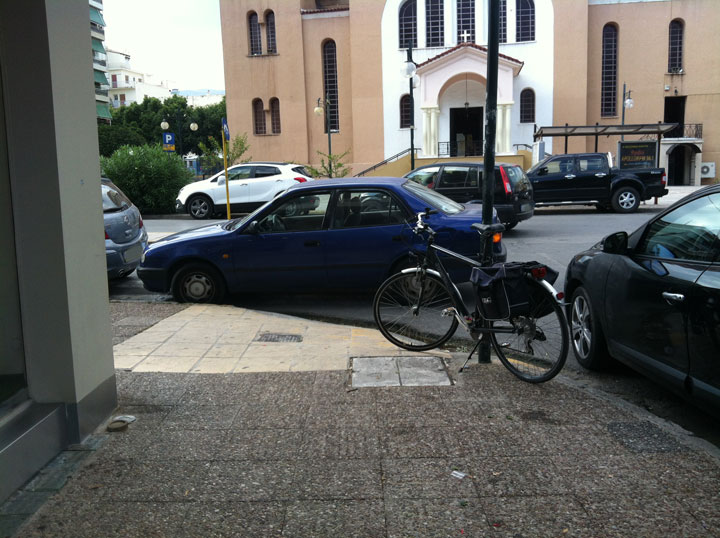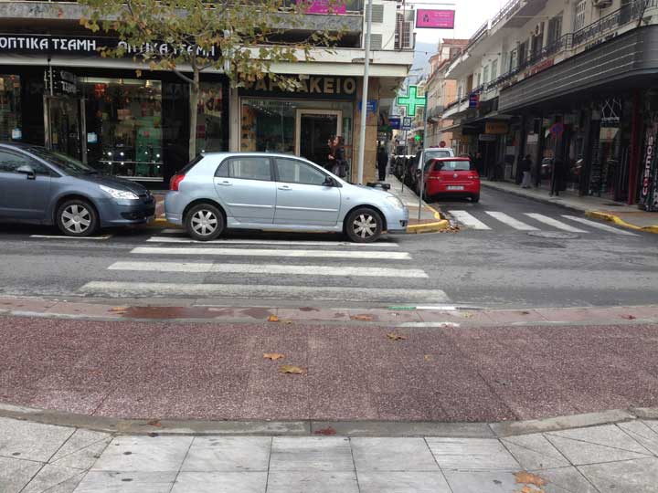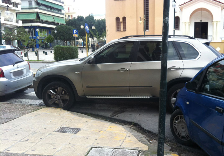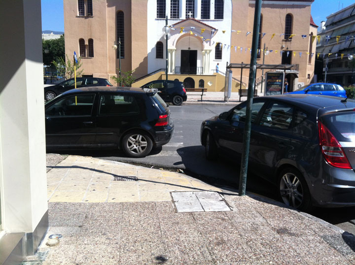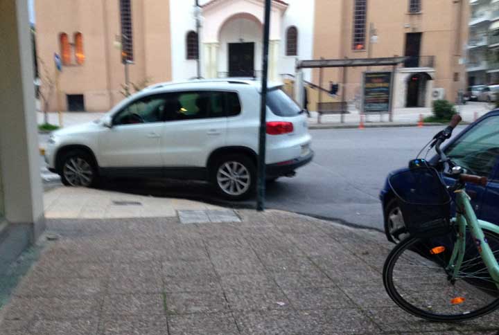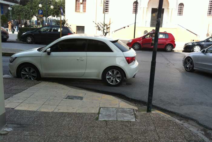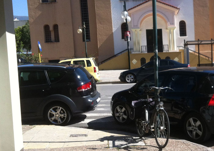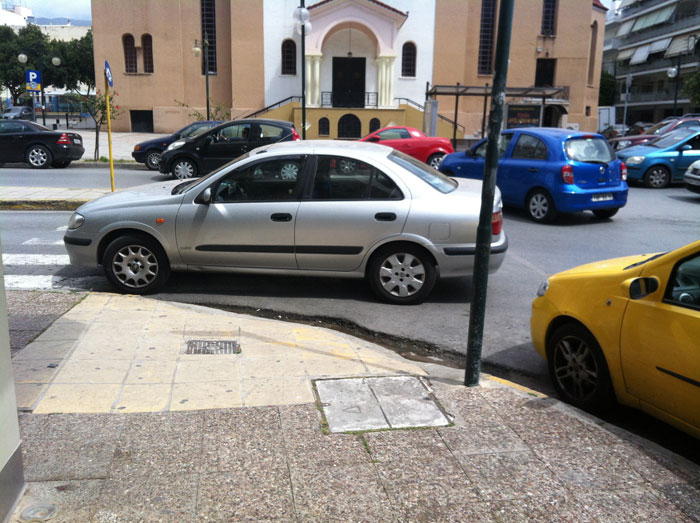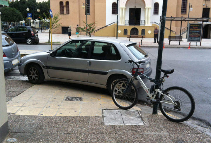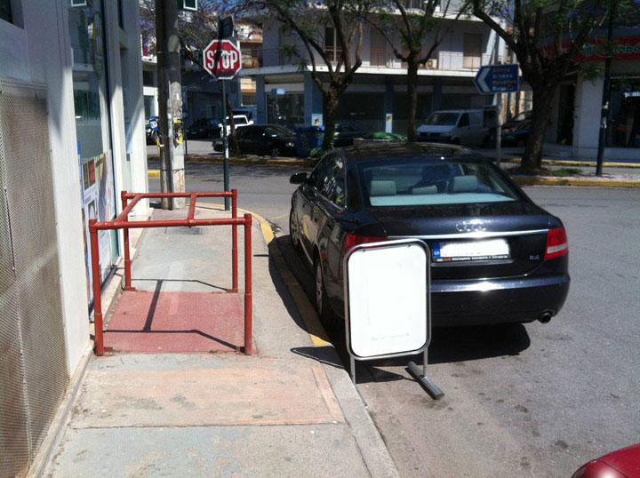 Ας το κάνουμε τώρα λίγο πιο δύσκολο. Έχεις προσέξει πως λείπουν κάποια κομμάτια από το πεζοδρόμιο εκεί που αρχίζουν οι άσπρες γραμμούλες της διάβασης; Πίστεψέ το! Δεν είναι κατασκευαστική παράλειψη του εργολάβου για να κλέψει λίγο τσιμέντο... ούτε το έφτιαξαν για να σε διευκολύνουν να ανεβαίνεις με το ποδήλατο και σίγουρα δεν το έφτιαξαν για να προστατέψουν τα ζαντολάστιχά σου όταν παρκάρεις! Είναι για ανθρώπους με κινητικά προβλήματα, είναι για μαμάδες με καροτσάκια και άλλες κατηγορίες συμπολιτών σου που μάλλον τα προβλήματά τους είναι λιγότερο σημαντικά από τα δικά σου. Σε συμπονώ.