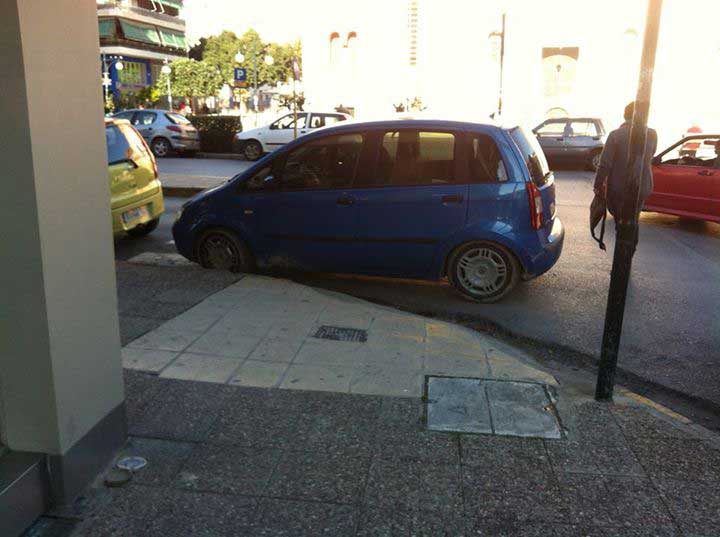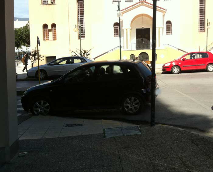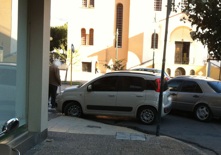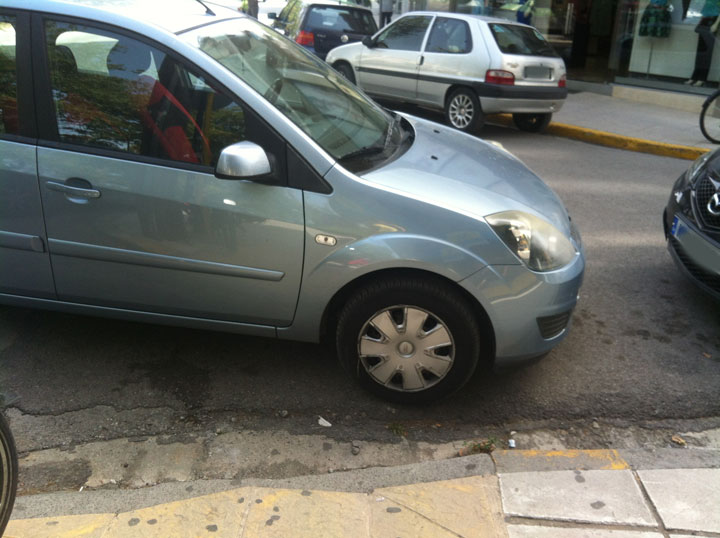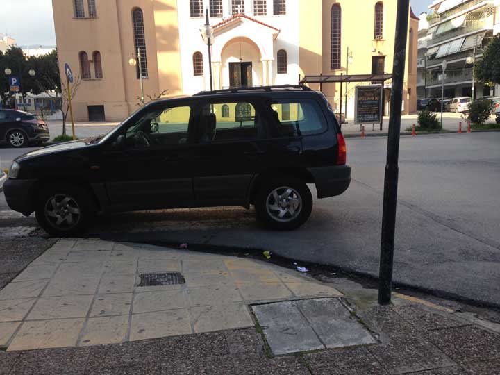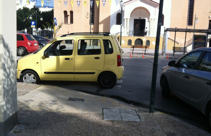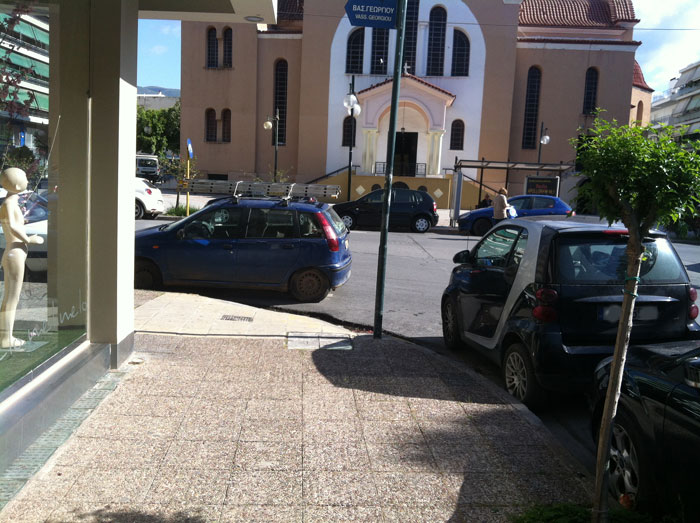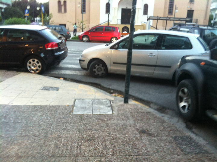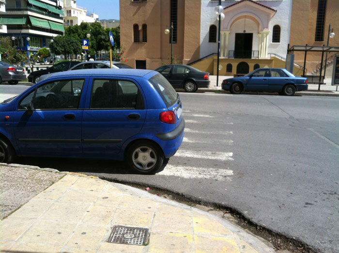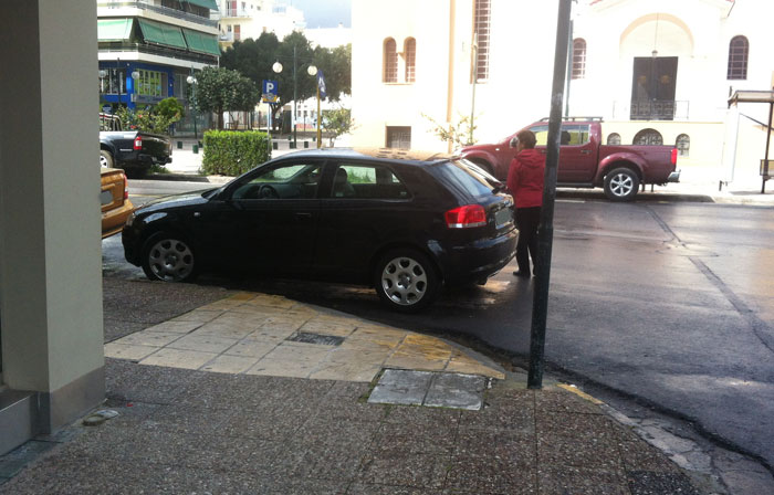 Ας το κάνουμε τώρα λίγο πιο δύσκολο. Έχεις προσέξει πως λείπουν κάποια κομμάτια από το πεζοδρόμιο εκεί που αρχίζουν οι άσπρες γραμμούλες της διάβασης; Πίστεψέ το! Δεν είναι κατασκευαστική παράλειψη του εργολάβου για να κλέψει λίγο τσιμέντο... ούτε το έφτιαξαν για να σε διευκολύνουν να ανεβαίνεις με το ποδήλατο και σίγουρα δεν το έφτιαξαν για να προστατέψουν τα ζαντολάστιχά σου όταν παρκάρεις! Είναι για ανθρώπους με κινητικά προβλήματα, είναι για μαμάδες με καροτσάκια και άλλες κατηγορίες συμπολιτών σου που μάλλον τα προβλήματά τους είναι λιγότερο σημαντικά από τα δικά σου. Σε συμπονώ.