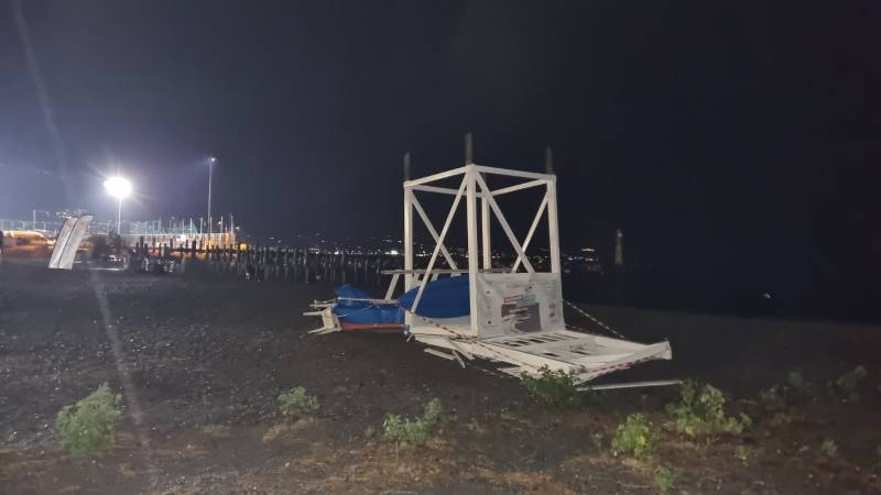 Ο πύργος του ναυαγοσώστη στην παραλία του Κορδία την… πλήρωσε από τη χθεσινή νεροποντή, που συνοδευόταν από ριπές ανέμου.
