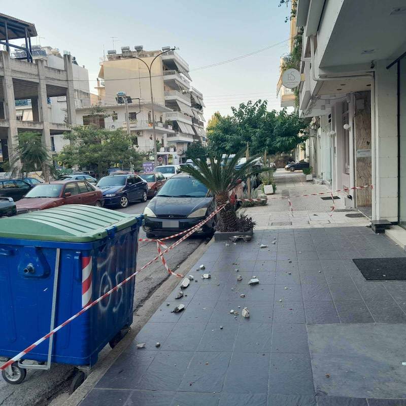 Την ώρα της μεγάλης νεροποντής, στην οδό Ασκληπιού, κάτω από τους Ταξιάρχες, κατέρρευσε τμήμα τσιμέντου από μπαλκόνι του 3ου ορόφου κι έσκασε με δύναμη στο πεζοδρόμιο. Το ευτύχημα ήταν ότι σε ένα σημείο με μεγάλη κίνηση καθημερινά, την στιγμή της κατάρρευσης, δεν περνούσε κάποιος πεζός. Λίγη ώρα αργότερα, αστυνομικοί της ΔΙΑΣ απέκλεισαν με κάδο ανακύκλωσης και πλαστικές κορδέλες τον χώρο.