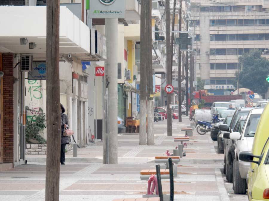 Οι κολόνες της ΔΕΗ βρίσκονται πάνω στη διάβαση τυφλών και σε ράμπες καθώς δεν έγινε η μετακίνησή τους πριν την πλακόστρωση. Ετσι, παραμένουν επικίνδυνες για όλους τους πεζούς και ειδικότερα για τους συμπολίτες μας που αντιμετωπίζουν προβλήματα όρασης.