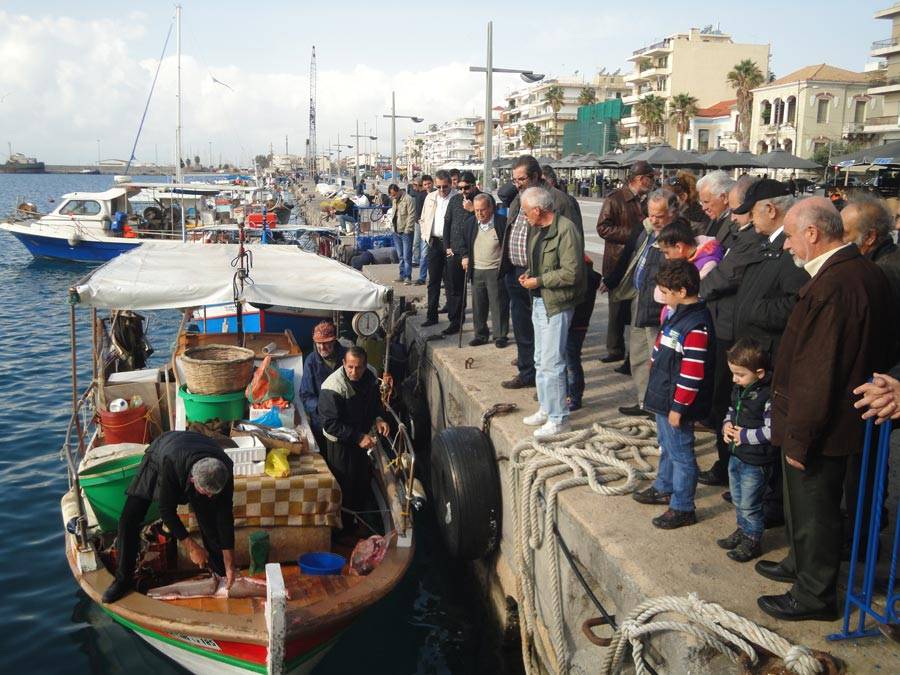 Με το που έγινε αντιληπτό ότι έφθασε στο λιμάνι της Καλαμάτας το καΐκι με το γαλέο, το θέαμα προσέλκυσε το ενδιαφέρον αρκετών περαστικών.