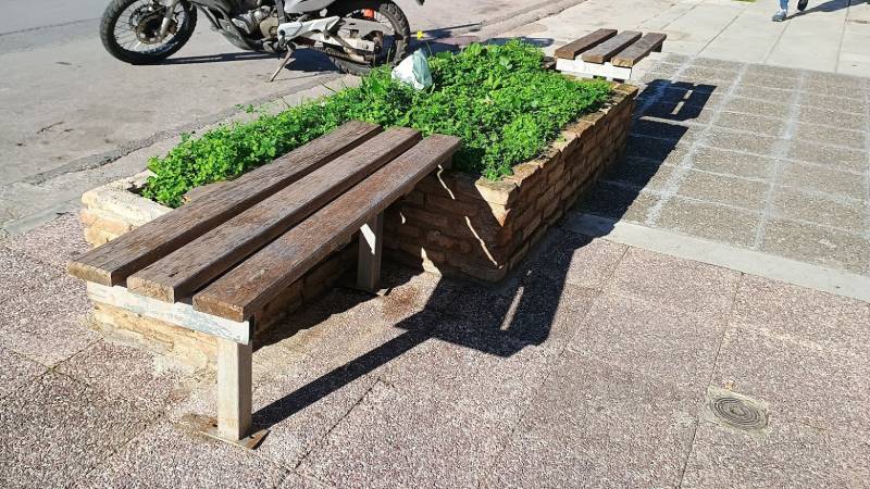 Ένα από αυτά βρίσκεται στο ανατολικό πεζοδρόμιο της οδού Νέδοντος και χρειάζεται να βιδωθεί στο έδαφος πριν σωριαστεί μαζί του κάποιος ανυποψίαστος περαστικός που θα το χρησιμοποιήσει για να ξαποστάσει.