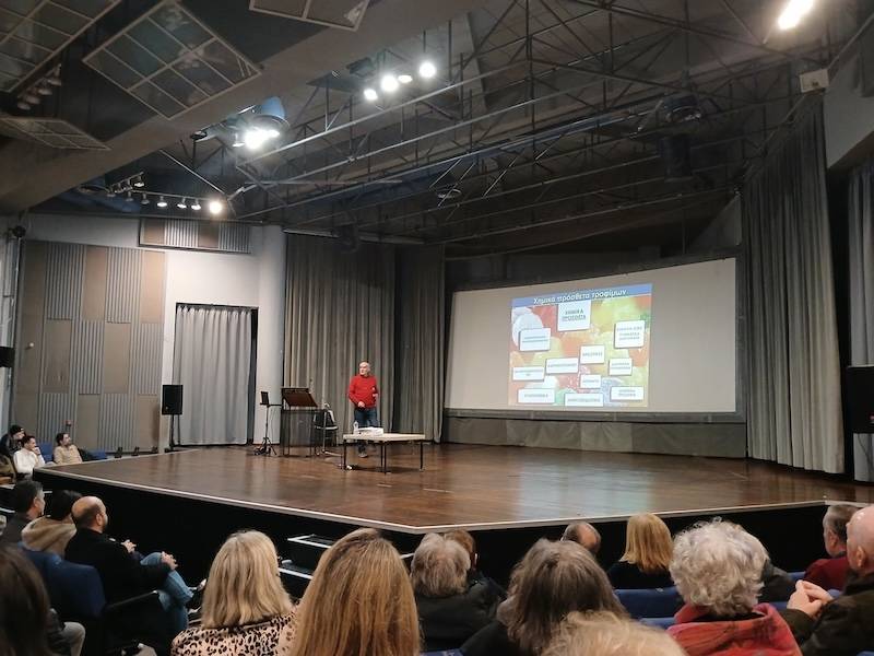 Παρά τη βροχή αλλά και την ταυτόχρονη διεξαγωγή του ντέρμπι των “αιωνίων” στο ποδόσφαιρο, αρκετοί νέοι άνθρωποι έδωσαν το “παρών” στην παρουσίαση του βιοχημικού Αντώνη Καράγιωργα για τα υπερεπεξεργασμένα τρόφιμα, την Τετάρτη στο Πνευματικό Κέντρο.