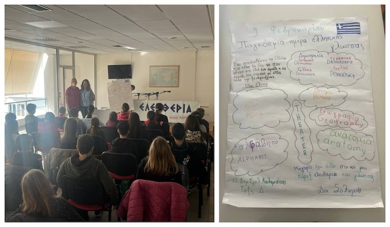 Τα παιδιά έδειξαν ιδιαίτερο ενδιαφέρον για τη διαδικασία έκδοσης μιας εφημερίδας, αλλά και για το επάγγελμα του δημοσιογράφου. Παράλληλα μας μίλησαν για την Παγκόσμια Ημέρα Ελληνικής Γλώσσας, που γιορτάζεται κάθε χρόνο στις 9 Φεβρουαρίου και δώρισαν στην “Ε” την αφίσα που έχουν δημιουργήσει για τον συγκεκριμένο εορτασμό.