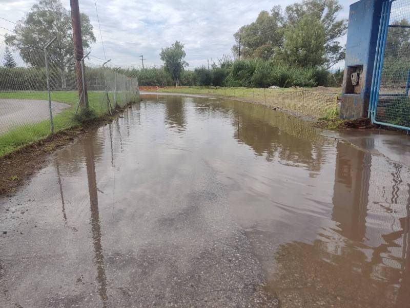 Πλημμυρισμένος ήταν το Σάββατο, ο δρόμος έξω από τη Διασπορά, στη στροφή προς τον παραλιακό δρόμο και προς τον αρχαιολογικό χώρο στα Ακοβίτικα και τα αυτοκίνητα περνούσαν με μεγάλη προσοχή.