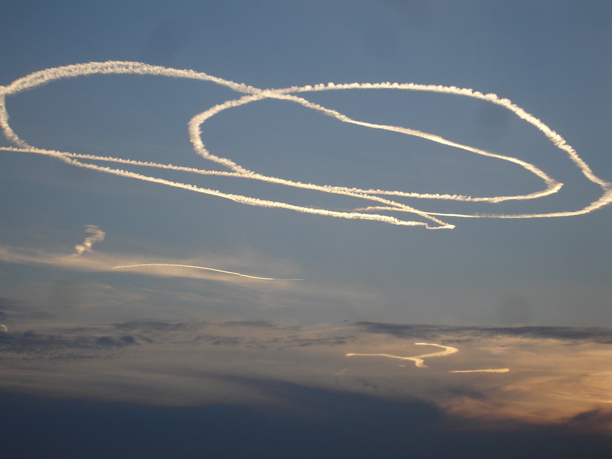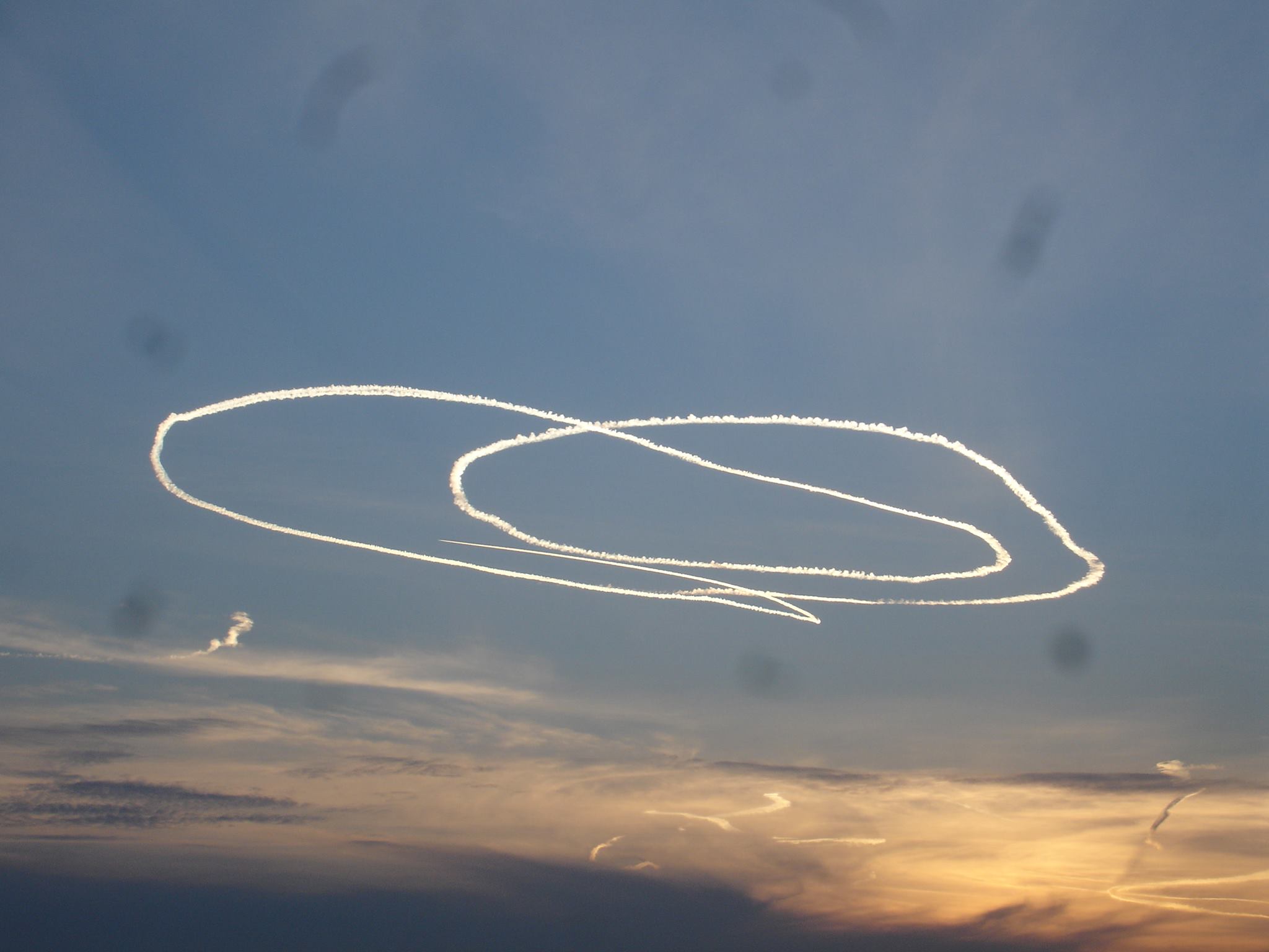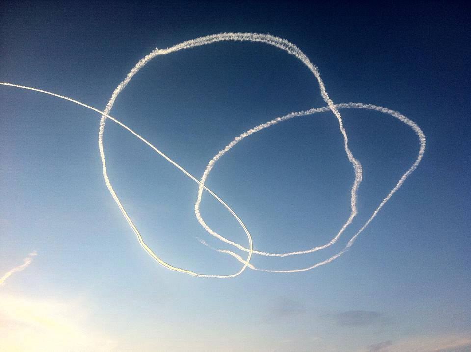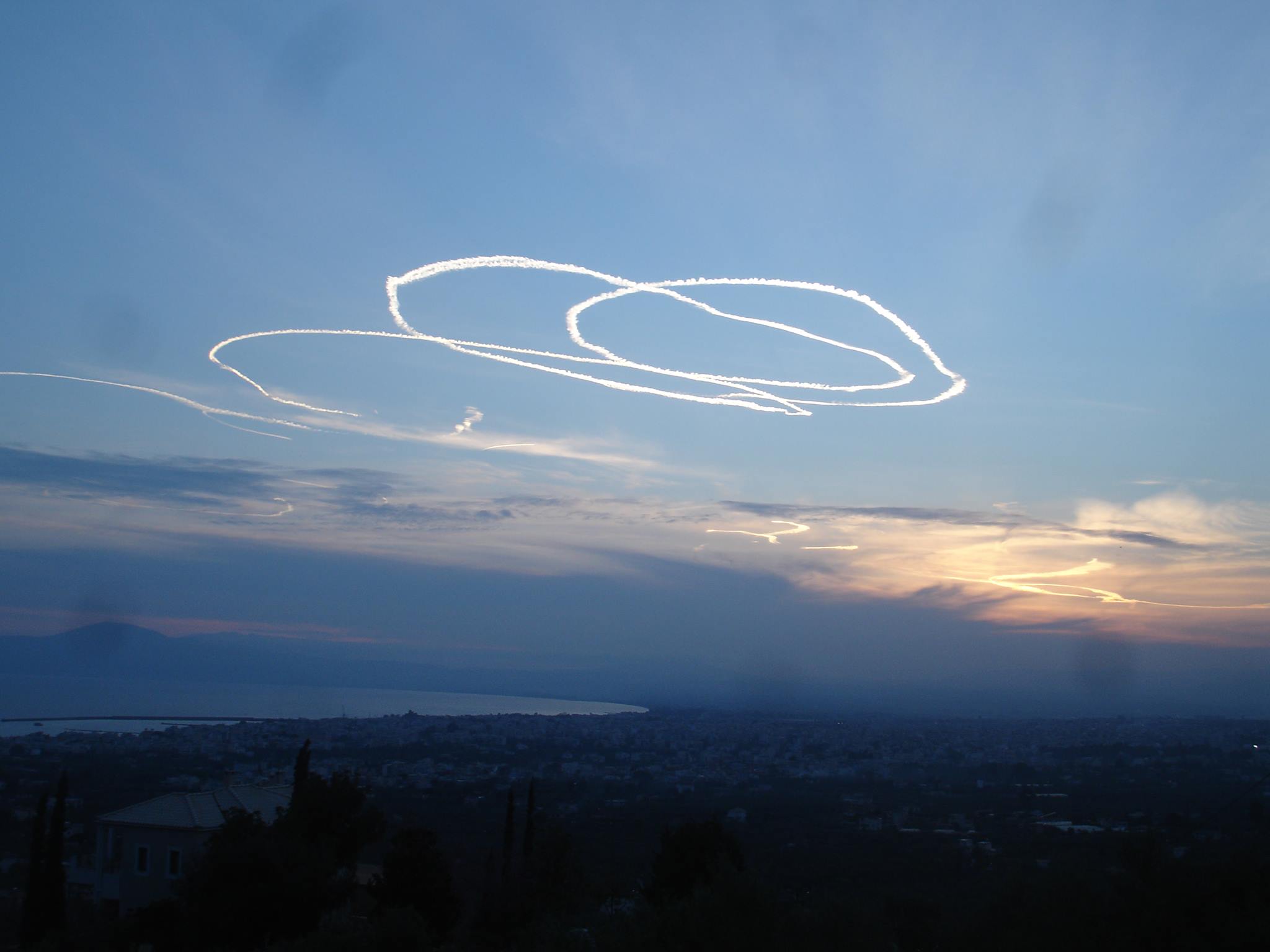 Τηλέφωνα πολιτών, που ανησύχησαν μήπως μας ψεκάζουν έγιναν πριν λίγο στην "Ε" στη θέα αεροπλάνου, το οποίο πίσω του άφηνε καπνούς σε σχηματισμούς. Προφανώς πρόκειται για αεροπλάνο επίδειξης, το οποίο πετάει πάνω από τη Μεσσηνία.