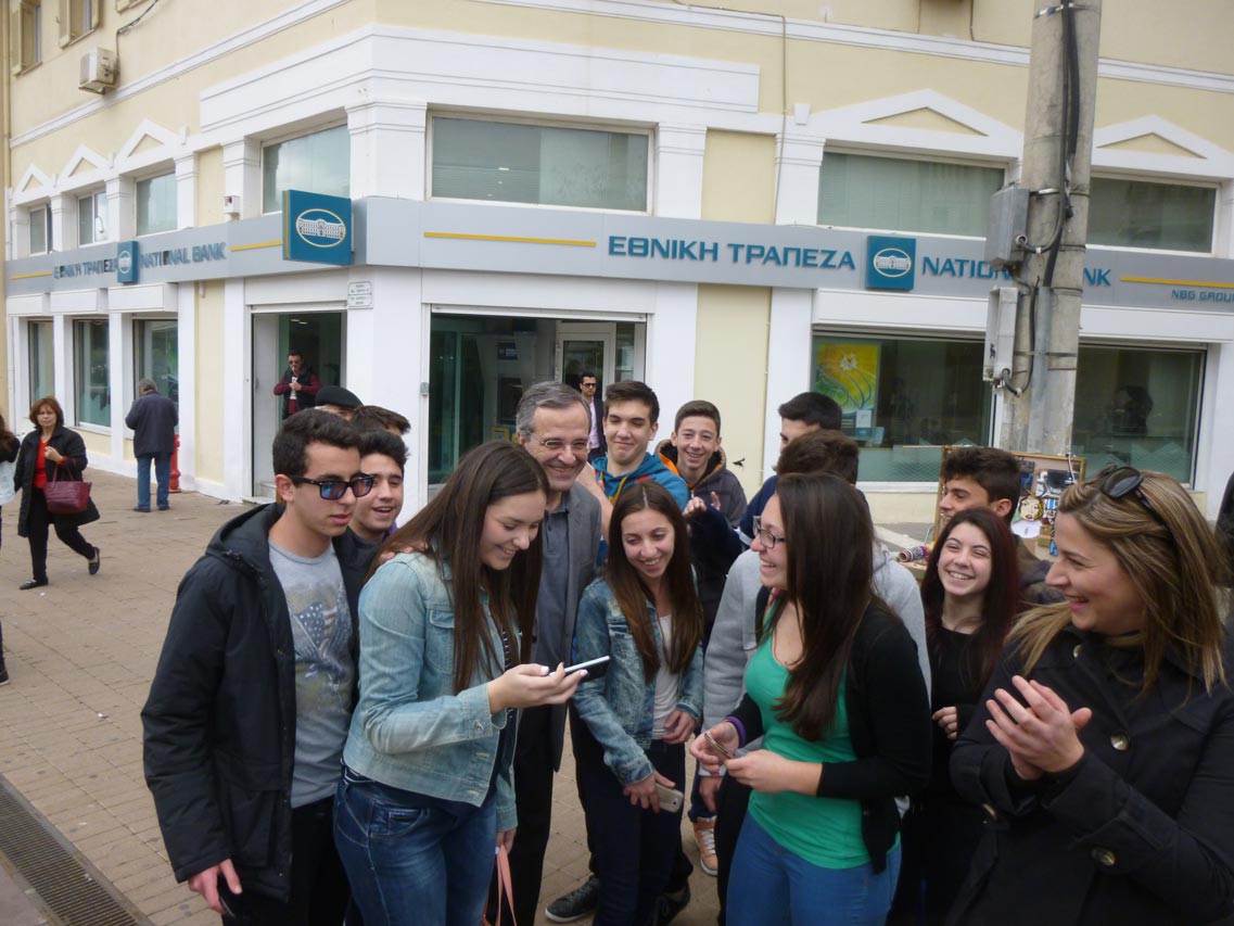 Κατά τη διάρκεια της σημερινής του βόλτας στην κεντρική πλατεία της μεσσηνιακής πρωτεύουσας ο πρώην πρωθυπουργός συνάντησε μαθητές του 52ου Λυκείου Αθηνών από τον Κολωνό, που βρίσκονται σχολική εκδρομή στην πόλη και όταν του ζήτησαν να βγάλουν φωτογραφία selfie δεν μπορούσε να τους αρνηθεί...