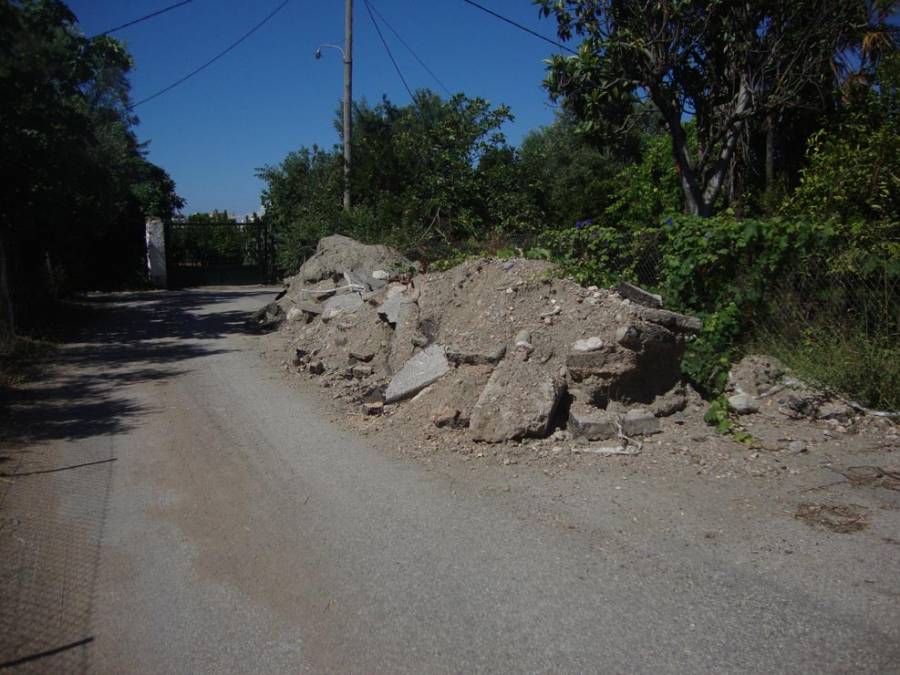Από τον Απρίλιο, σύμφωνα με περιοίκους, βρίσκονται σε αυτή τη θέση τα μπάζα, στην οδό Κεφαλέα μεταξύ Γιαννιτσανίκων και Μπαριάμαγα στην Καλαμάτα.