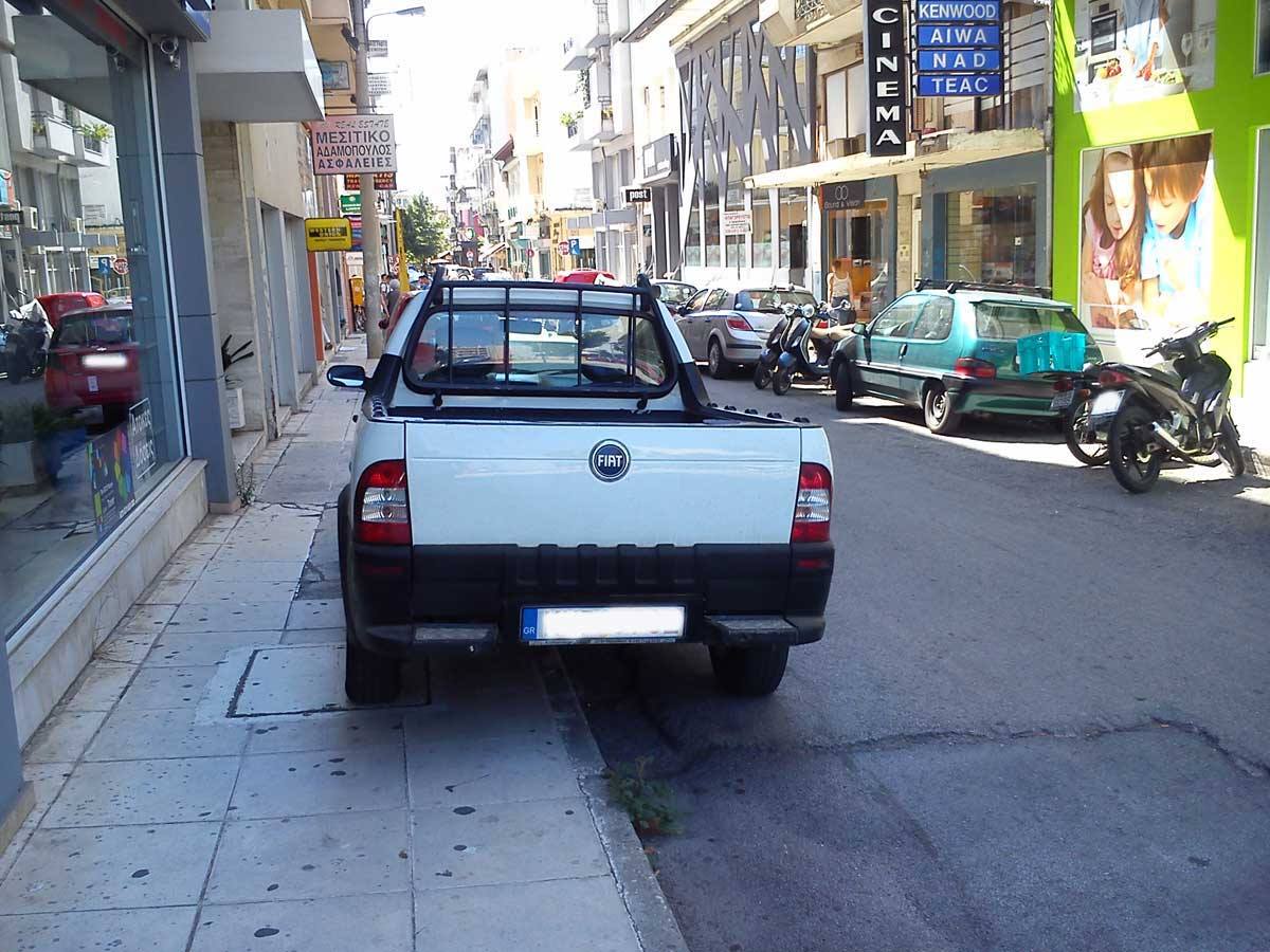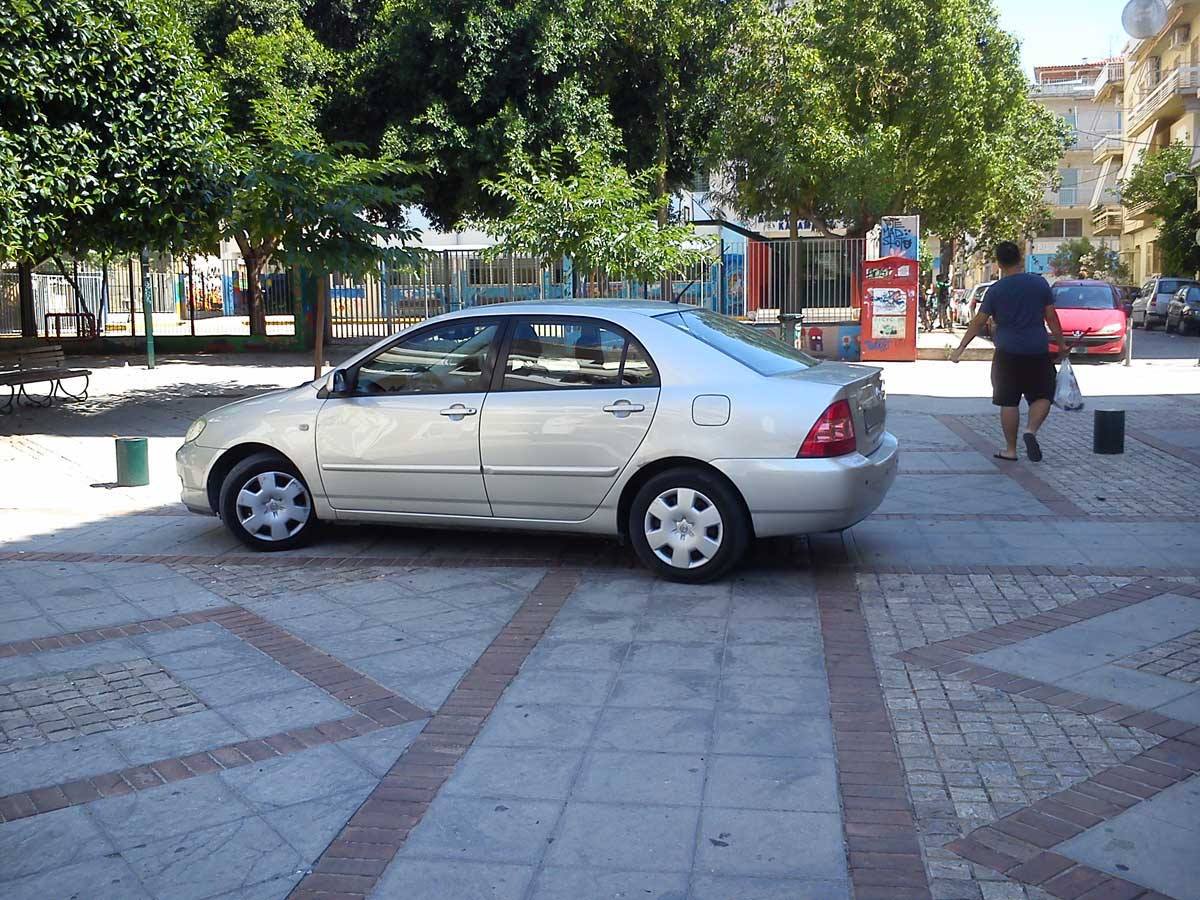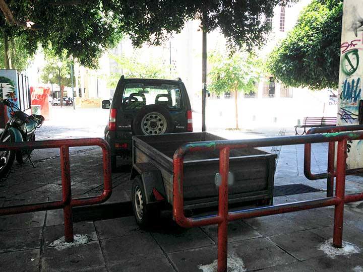 Αμάξι με τρέιλερ παρκαρισμένο ωραία - ωραία στη σκιά πάνω στην πλατεία Ταξιαχών...