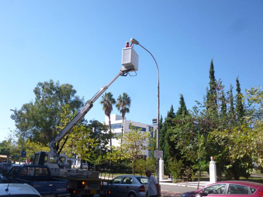 Τα καμένα φώτα του δημοτικού φωτισμού άλλαζε χθες το πρωί το καλαθοφόρο του Δήμου Καλαμάτας στην Αριστομένους.