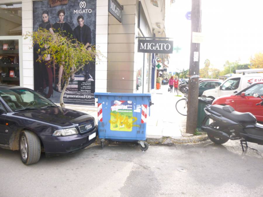Πρόβλημα στον κόσμο που περπατάει σε ένα από τα πιο κεντρικά σημεία της Καλαμάτας, δημιουργεί ο κάδος ανακύκλωσης που βρίσκεται στη γωνία Αριστομένους και Βασ. Σοφίας.