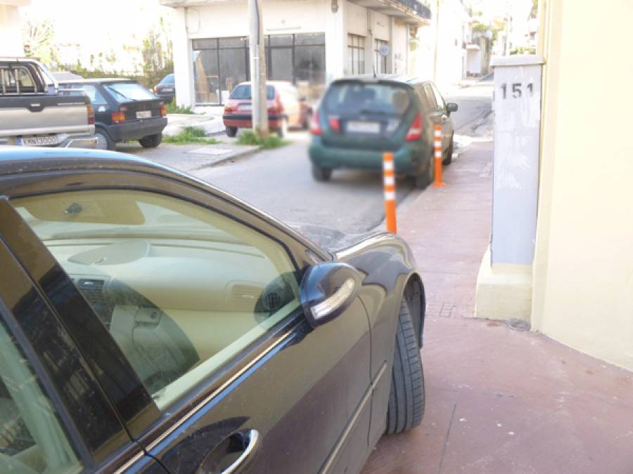 Δεν γνωρίζω αν τα έβαλε ο Δήμος Καλαμάτας ή κάποιος ιδιώτης, αν και μοιάζουν με δημοτικά. Χθες το πρωί, όμως, στη γωνία, πριν τα κολονάκια, ΙΧ είχε παρκάρει στο πεζοδρόμιο. Πρέπει, δηλαδή, να γεμίσει κολονάκια το πεζοδρόμιο, για να γλιτώσουμε από τους αδίστακτους καβαλάρηδες;