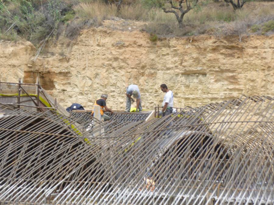 Σκαρφαλωμένοι είναι οι σιδεράδες, στα πιο ψηλά σημεία των υπό κατασκευή κατ-εντ-κάβερ στον περιφερειακό αυτοκινητόδρομο της Καλαμάτας, πάνω από την Αγιάννα.