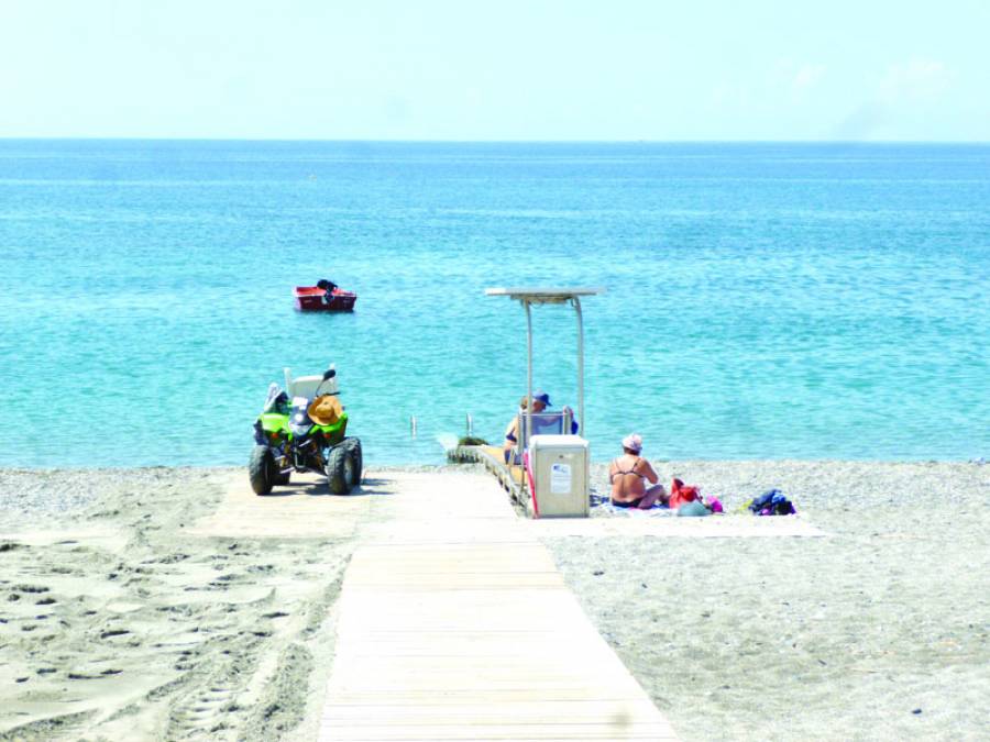 Μια "γουρούνα" είχε παρκάρει πριν λίγες ημέρες στην ακτή κάτω από την Ανάσταση, στο τέλος του διαδρόμου πρόσβασης των ΑμεΑ, δίπλα στο ειδικό μηχάνημα για το θαλάσσιο μπάνιο τους.