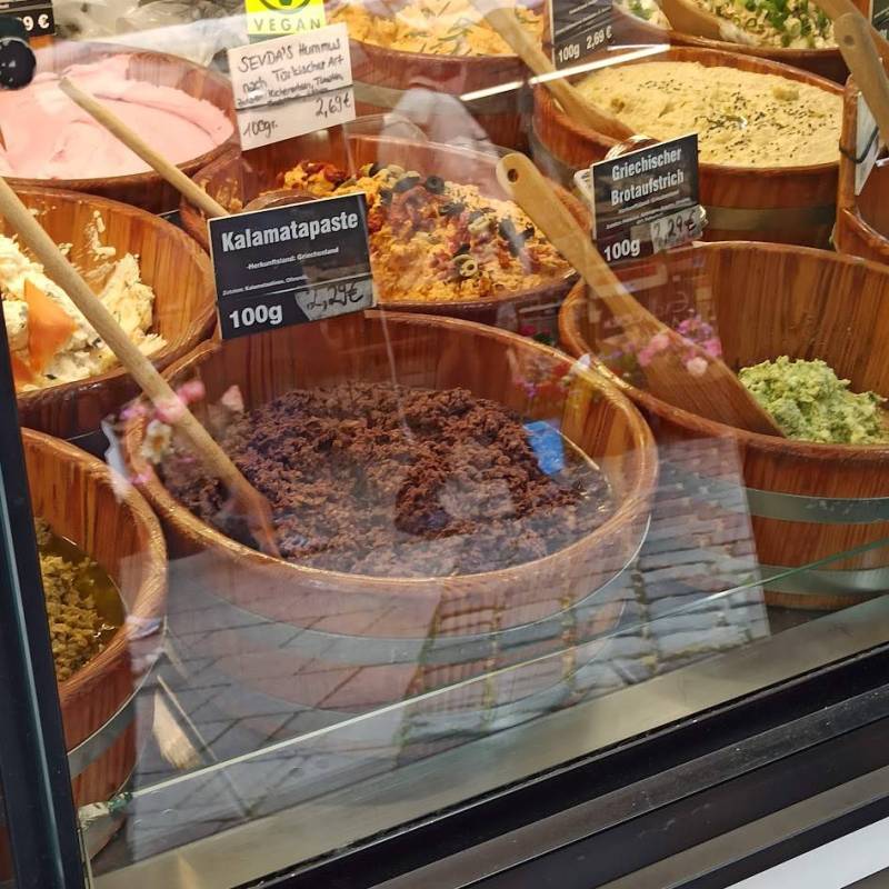 Σ.Σ. Η φωτογραφία είναι από την αγορά του Μονάχου στην οποία η πάστα ελιάς Καλαμάτας (αγνώστου προέλευσης) πωλείται 22,9 ευρώ το κιλό.
