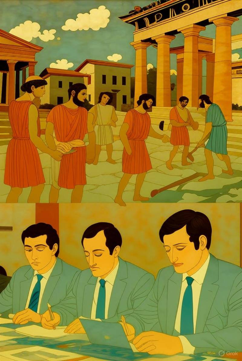 Οι αρχαίοι Έλληνες του Ακράγαντα ζούσαν γνωρίζοντας ότι η φθορά είναι αναπόφευκτη. Η αλήθεια αυτή δεν τους οδηγούσε στην παραίτηση, αλλά στη δημιουργία έργων που αντέχουν στον χρόνο. Οι ναοί τους, οι πόλεις τους, οι στοχασμοί τους γεννήθηκαν από την επίγνωση της θνητότητας -όχι από την αυταπάτη της αιωνιότητας. Ο πολιτικός και ο πολίτης ήταν φορείς μιας κοινής μοίρας. Να παραδώσουν κάτι καλύτερο στους επόμενους, όχι να εξαντλήσουν ό,τι παρέλαβαν. Αυτή η στάση του αρχαίου κόσμου έρχεται σε πλήρη αντίθεση με τη νοοτροπία της σημερινής πολιτικής τάξης.