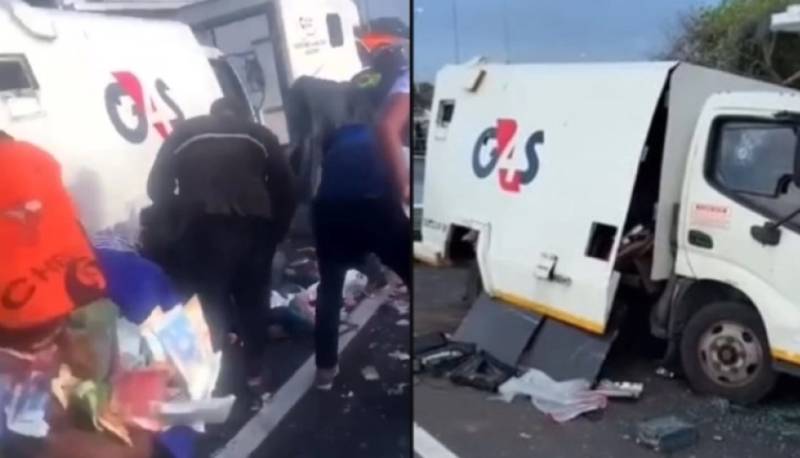 Σκηνές χάους και αλλοφροσύνης σε αυτοκινητόδρομο του Κέιπ Τάουν. Ένοπλοι ανατίναξαν χρηματαποστολή και μόλις έφυγαν, ξεχύθηκαν οι οδηγοί να αρπάξουν όσα χαρτονομίσματα μπορούσαν.