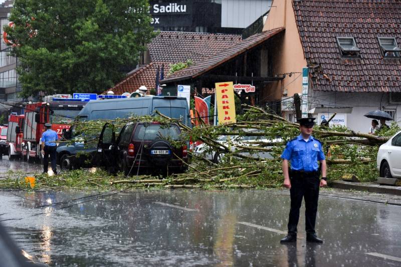 Οι νεκροί από τη σφοδρή κακοκαιρία που πλήττει την περιοχή ανέρχονται σε δύο αφού νωρίτερα ένας άνδρας έχασε τη ζωή του όταν το αυτοκίνητό του καταπλακώθηκε από δέντρο, σε δρόμο της Πρίστινάς. Η συνεπιβάτιδά του τραυματίστηκε.