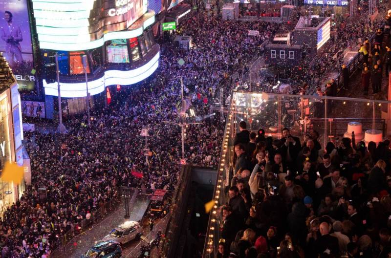 Στην Νέα Υόρκη, εκατομμύρια άνθρωποι περίμεναν την παραδοσιακή κάθοδο της κρυστάλλινης σφαίρας στην κατάφωτη Τάιμς Σκουέαρ. Η αστυνομία, που είχε αναπτυχθεί στο κέντρο του Μανχάταν, έκανε ελέγχους σε 'ύποπτα' αυτοκίνητα, έκλεινε δρόμους και 'φίλτραρε' τη ροή του πλήθους με κιγκλιδώματα.