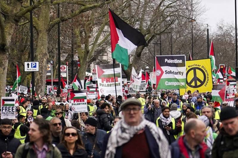 «Ζητάμε να κηρυχθεί μόνιμη κατάπαυση του πυρός για να σταματήσει αυτή που το κορυφαίο δικαστήριο του κόσμου έκρινε πως είναι πιθανή γενοκτονία», είπε στο τηλεοπτικό δίκτυο Sky News ο Μπεν Τζαμάλ, διευθυντής της Εκστρατείας Αλληλεγγύης στην Παλαιστίνη (Palestine Solidarity Campaign), μιας από τις συλλογικότητες που οργάνωσαν την κινητοποίηση.