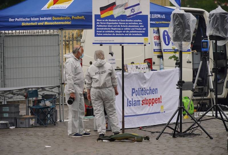 Στο σημείο της επίθεσης βρίσκονταν ήδη αστυνομικές δυνάμεις, για την περιφρούρηση της συγκέντρωσης και απαιτήθηκαν μόνο λίγα δευτερόλεπτα μέχρι να επέμβουν. Αρχικά, τον δράστη επιχείρησε να ακινητοποιήσει ένας άνδρας ιδιωτικής ασφάλειας των διοργανωτών, ενώ πολύ σύντομα ανέλαβαν δράση τουλάχιστον τέσσερις αστυνομικοί. Ο ένας από αυτούς δέχθηκε δύο μαχαιριές από τον δράστη, ο οποίος προς στιγμήν διέφυγε, για να ακινητοποιηθεί τελικά από άλλον αστυνομικό, ο οποίος έκανε χρήση του όπλου του. Η ταυτότητα του δράστη παραμένει άγνωστη και η αστυνομία του Μανχάιμ απευθύνει έκκληση σε όποιον γνωρίζει οτιδήποτε, να προσέλθει στις αρχές.