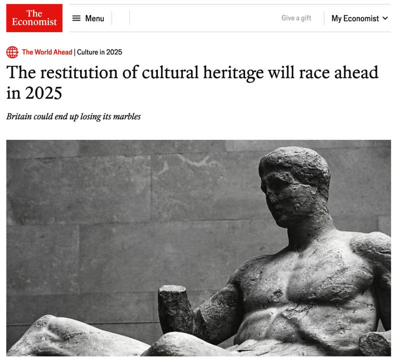 Το κορυφαίο βρετανικό περιοδικό δίνει όμως και μια άλλη διάσταση λέγοντας πως σε παγκόσμιο επίπεδο, την επόμενη χρονιά, ο επαναπατρισμός πολιτιστικών κειμηλίων στις χώρες προέλευσης τους θα προχωρήσει με γοργούς ρυθμούς. Παραθέτει μάλιστα παραδείγματα επιστροφής αρχαιοτήτων από κορυφαία Μουσεία του κόσμου τα τελευταία χρόνια, τονίζοντας πως αυτή η τάση μέσα στο 2025 αναμένεται να ενισχυθεί.